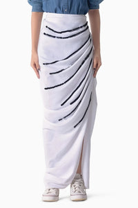 The new drape for the season, The Kjo Skirt has a side drape detail coming towards the front. Cut in a luxe crepe, it takes the shape of your body and comes with an broad waistband and side opening. It is really easy to wear and will make you stand out in the crowd .