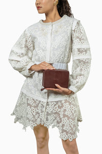 Featuring the White Lace Dress with Pearls by Kukoon, this sophisticated piece combines delicate lace with a pearl-embellished collar and a flattering belt for a comfortable fit in a timeless white hue.