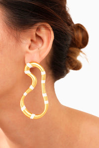 The Leia hoops are for times when you want to let your hair down , look sensual and fun , (both at the same time!) without being caught up in excessive drama. An irregular silhouette, a golden base enamelled with stripes of cerulean and ivory, these make for a bright and beautiful you!