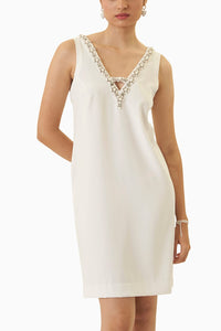 Featuring White Linen Bow Dress by Anahe Design. Exude sophistication in our ivory georgette dress, meticulously adorned with hand embroidery. This dress combines the flowing elegance of georgette with intricate embroidery, creating a timeless piece.