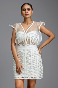 White Mini Skirt with Geometric Latticework