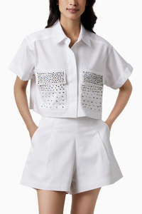 White Multicolor Swarovski Studs Shorts Co-ord Set