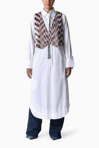 An outerwear essential, elevated in design. Make a statement with the Nalki Waistcoat, which lends a playful aesthetic to a classic silhouette. A simple sleeveless open style is presented in an array of coloured beaded embellishments throughout. A great investment to wear over anything and everything.