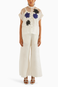 White Organza Applique Cap Sleeves Top with Pants