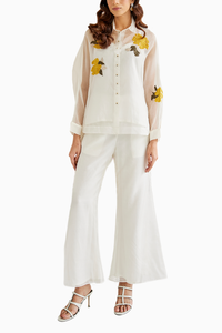 White Organza Applique Collar Shirt with Pants