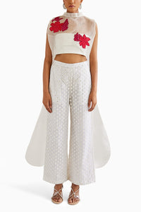 White Organza Applique Trail Top with Mirrorwork Palazzos