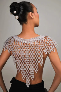 Featuring White Pearl Cape by Anaash X Ekaya, this elegant cape blends tradition with modern design. Crafted from manufactured pearls in a pristine white hue, it adds a timeless and graceful touch to any sophisticated wardrobe.