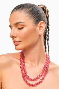The Red Tumbles necklace showcases stunning red onyx stones, each carefully polished to highlight their rich, deep hue. The smooth, tumble-style stones are uniquely shaped, creating a beautiful, organic flow along the necklace. With its bold, vibrant color and striking simplicity, this piece adds a touch of elegance and energy, making it a perfect accessory for any occasion.