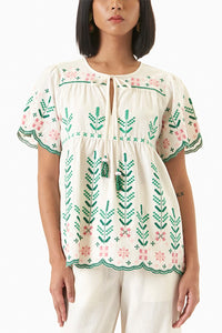 Fea turing the White Picotin Top by Miri Pret. This elega nt top fea tures a composition of 70% Linen a nd 30% Cotton in a timeless Ecru hue. With a regula r fit, it offers versa tile styling options for a ny occa sion.