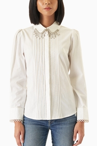 A classic shirt with pintucked detailing across the length with embellished collar.