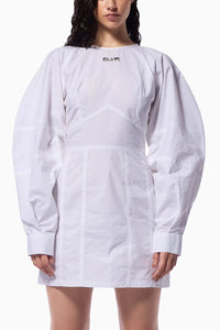 This poplin shirt dress features wide rounded sleeves and a fitted mini silhouette, offering a chic and modern look. Made from soft cotton poplin fabric, it’s both comfortable and stylish. The crisp white color adds a fresh, timeless appeal.