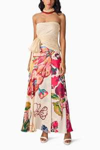 Featuring White Prime Mae Skirt by Saaksha & Kinni's Nirah Collection. This floral print asymmetric overlap skirt offers a customizable side slit, creating a fluid silhouette. Perfect for effortless elegance, pair it with structured tops or flowing blouses for versatile styling.