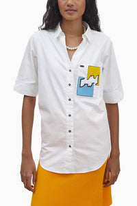 White Puzzle Pop Embroidered Shirt