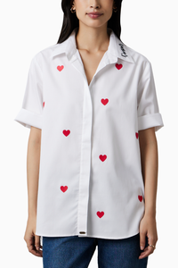 White Red Heart Embroidered Shirt