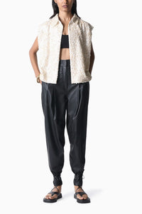The statement jacket of the season. Unapologetically blinged, the Shell Jacket features an open jacket completely hand embroidered with shells and beads. It is the perfect amount of fun and sexy and works as a great statement layer to wear over your dresses or trousers.