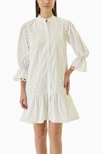 Go out on your summer days in utmost style & comfort in this white A-line short Siena dress, tailored in 100% cotton fabric. It has a lace detailing with round neck.