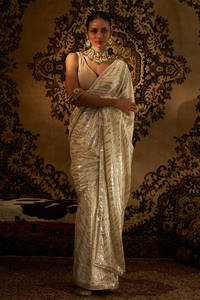 White Silk Satin Chiffon Saree