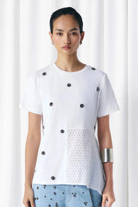 Amp up your everyday look with this studded tee—bold, playful, and effortlessly cool with an asymmetric twist.