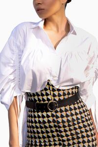 Elevate your style with this crisp white cotton poplin shirt. Featuring stringed sleeve details and simple collars with a front shell button fastening, it adds a stylish spin to your wardrobe staples. Made with high-quality materials, it's perfect for any occasion.