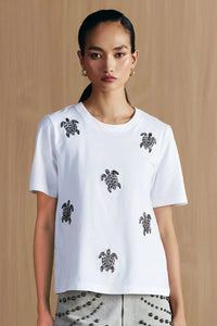 White Turtle Embellished T-Shirt