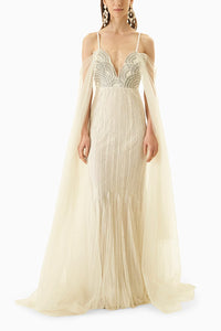 Intricately Hand Embroidered Dress Adorned With Bigle Beads & Sequin, Yltra Feminine Sheer Veil Completes The Look
