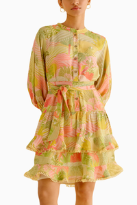 Introducing our Palm and Dune printed layered dress. This enchanting piece features delicate frill and lace detailing, perfectly accentuated by a chic belt for a touch of elegance. Embrace effortless style with this whimsical ensemble.