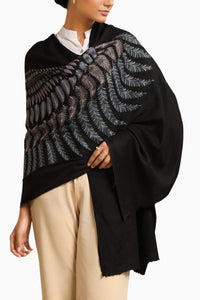 Enhance your style with our wings cashmere fine wool black stole, showcasing exquisite aari embroidery for a touch of sophistication.