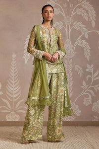 Featuring Wisp Mint Print Kurta Set by Ridhi Mehra's In the Folds Summer Collection '25. This elegant set includes a placement embroidered printed mint organza jacket, paired with a habutai silk kurta, pants, and a net dupatta. The soft mint hue and intricate embroidery create a refined, contemporary look with a touch of grace.