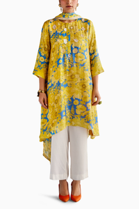Featuring a digitally printed A line highlighted kurta with pants. It comes along with the same printed dupatta with lace.