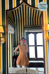 Udupi Dress is handcrafted using striped cotton fabric. It features a low back, a zip at the back for easy closure, breathable inner lining and and has a low waist flared hem.