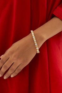 Wear this gorgeous accessory to amplify your formal style or add a hint of grace to your casual style with this tennis bracelet and round hard bracelet/bangle made in sterling silver is plated in yellow & white asher crystals. Available in different sizes.