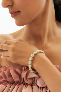 Wear this gorgeous accessory to amplify your formal style or add a hint of grace to your casual style with this stunning open close bangle is crafted in yellow and white heart cut crystals is just outstanding. Available in different sizes, its a fabulous accessory. Simple design and subtle detailing will complement any casual and formal avatars with equal grace and elan.