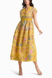 Featuring a yellow silk organza thread and beadwork checkered Shirt Dress by Chandrima's Florens collection. Merging classic elements with modern design, this dress is a testament to exquisite craftsmanship and timeless elegance.