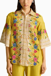Yellow Floral Embroidered Color Block Shirt