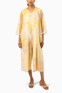 Yellow Organza Petal Printed Jacket and Jumpsuit