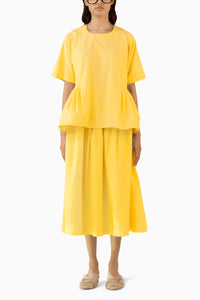 Elevate your professional wardrobe with our Yellow Peplum Top. Made from crisp cotton poplin, this cheery yellow top exudes quality and elegance. Perfect for formal settings, pair it with our vintage skirt for a sophisticated, feminine look. Upgrade your style game with this versatile piece.
