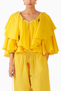 Featuring a charming ruffled design, this top with chilly applique embellishment from the Chilli collection adds a fun, whimsical touch to your wardrobe, effortlessly combining playful accents with a flattering silhouette.