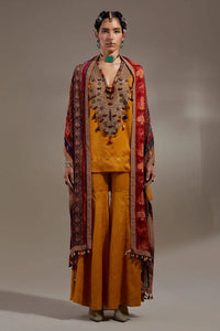 Featuring the Yellow Topaz Anka Mitra Short Kurta Set by Aseem Kapoor’s ANKA collection. A textured solid-colored relaxed-fit short kurta with embroidered yoke and tribal tassels, paired with a matching skirt and dupatta, all designed with an elasticated waist for comfort and style.