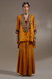Yellow Topaz Anka Mitra Short Kurta With Flared Pants