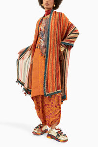 Featuring Yellow Topaz Mitra Long Kurta Set with Dupatta, this stunning ensemble is crafted from natural crepe and sheer silk. The anti-fit kurta showcases a printed design and an embroidered yoke, paired with relaxed-fit drape trousers and a complementing dupatta. The ensemble is elegantly embellished with tassels, MOP, and beads, making it a perfect blend of style and comfort.