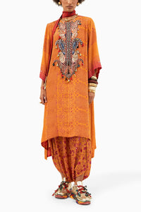 Yellow Topaz Mitra Long  Kurta with Drape Trouser Set