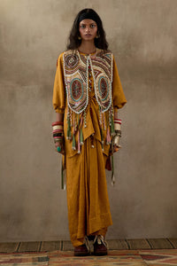 Composition: Gilet- Cotton Silk and Slub Satin, Kurta- Crushed Silk, Skirt- Crushed Silk