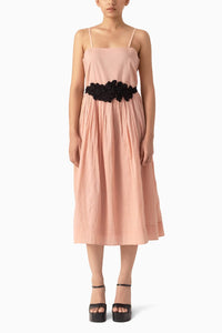 A coveted adornment tie-up, showcased on silk habutai foundation embellished with intricate patti jaal and organic yo-yo embroidery.