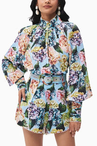 The Yulia Blue Cotton Lace Top and Shorts Set features a stylish blue cotton linen shirt with delicate lace detailing, paired with matching shorts. This comfortable and chic set is perfect for warm-weather outings, offering a relaxed yet fashionable look.