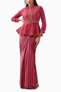 Zahra Embroidered Peplum Top With Drape Skirt
