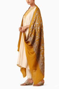 Introducing the Zania stole, where opulent cashmere fine wool meets exquisite Aari work. Imbued with artisanal flair, this stole adds a touch of sophistication to any look. Soft, warm, and versatile, it's perfect for both casual outings and formal affairs. Elevate your style with Zania, a statement piece that combines luxury with artisan craftsmanship. Flaunt your fashion sense and experience the epitome of comfort with this must-have stole.