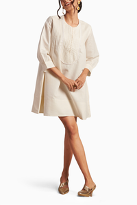 In a world of trends, here comes a classic. The Zarah dress details of a pin tuck front panel finished with handcrafted buttons that are laid over a breathable, airy silhouette that resembles the coming of three sixty-five days of summer. Dress effortlessly chic to a brunch or walk in relaxed to a picnic without letting go of your personal style.