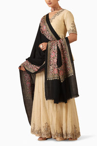Experience elegance and warmth with the Zayeden cashmere fine wool stole. Adorned with exquisite paisley Aari work along the border, it exudes sophistication and charm. Versatile for any occasion, this stole adds a touch of artisanal beauty to your ensemble. Elevate your style with Zayeden, a statement piece that combines luxury and craftsmanship.