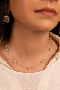 UNCUT Jewelry's Zee Necklace is Bold elegance. Silver, gold, and polkis unite in a design, a statement piece for the modern woman.