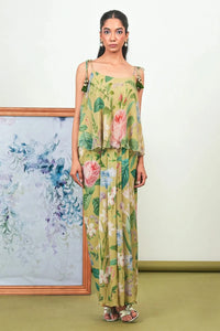 Composition: Top- Chiffon Silk, Dhoti- Crepe Silk Color: Green Length: Top- 20", Dhoti- 40" Components: 2 (Skirt & Top) Product Code: SVESAGE25JULF3